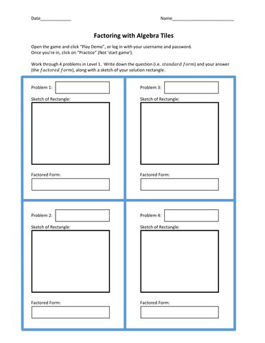 Template For Algebra Tiles Worksheets & Teaching Resources | TpT This worksheet is to be used with algebra tiles and reinforces the idea that an equation must stay equal when you manipulate/simplify terms or isolate the variables. It's designed to align with 7.EE.A.1, 7.EE.A.2, and 7.EE.A.3. One example of how to model an equation using algebra tiles is include Subjects: